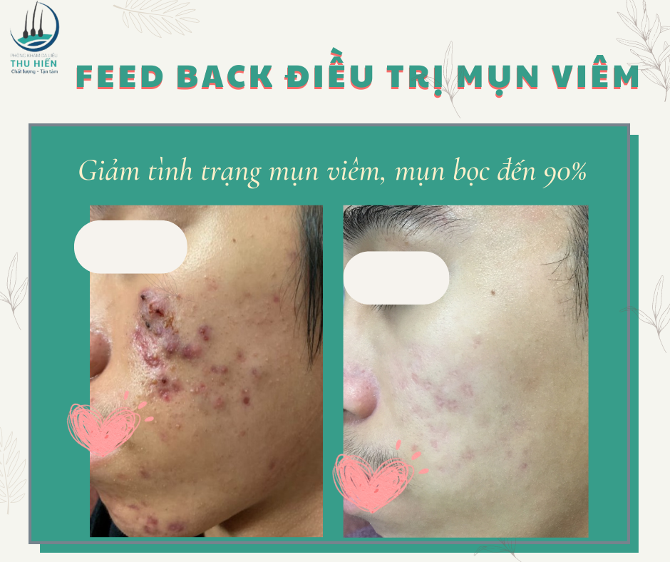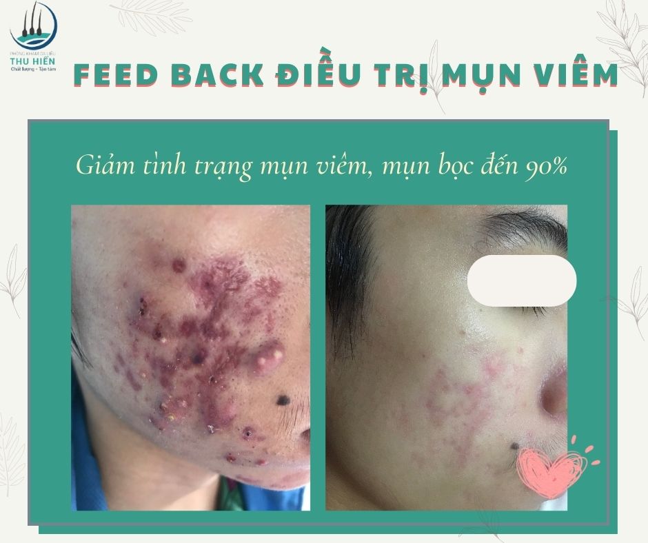 Kết quả hiện tại: Da đã hết viêm đỏ, sạch mụn, và sẹo lõm được cải thiện tới 90%