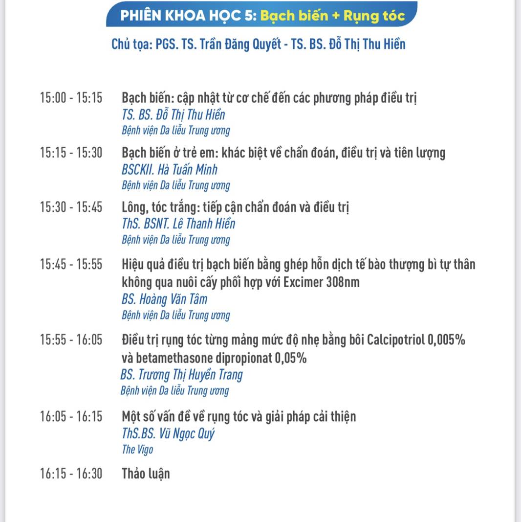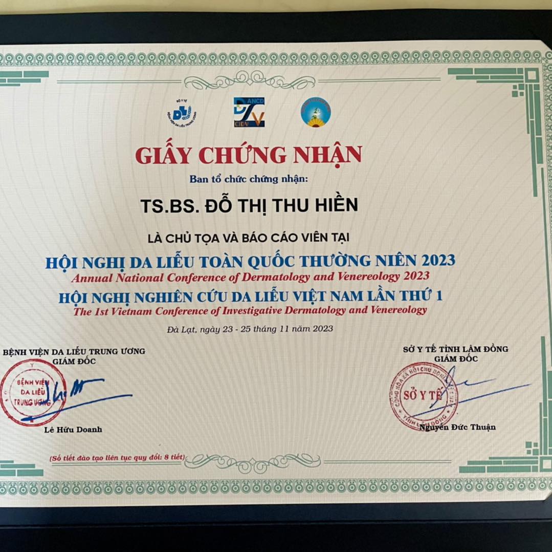 Tiến sĩ Bác sĩ Thu Hiền đã đóng góp một phần nhỏ bé vào thành công của hội nghị với vai trò là chủ toạ phiên khoa học về Bạch biến & Rụng tóc và báo cáo 2 chuyên đề tại hội nghị:
