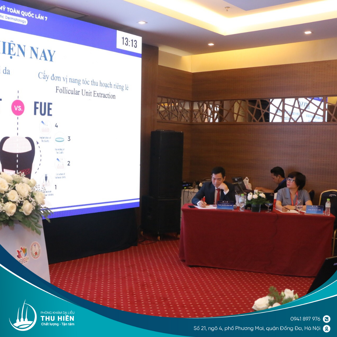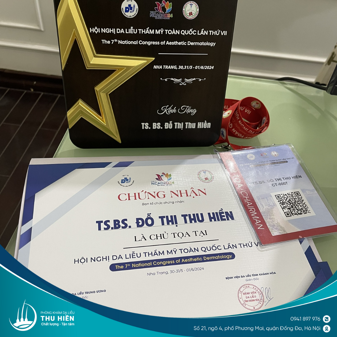 Hội thảo Da liễu Thẩm mỹ Toàn quốc lần thứ 7 vừa qua đã diễn ra thành công tốt đẹp, đánh dấu sự góp mặt của đội ngũ Y bác sĩ Phòng khám Da liễu Thu Hiền. Hội thảo quy tụ đông đảo các chuyên gia da liễu uy tín trên khắp cả nước, tạo nên một diễn đàn chuyên môn sôi nổi, nơi các bác sĩ, chuyên gia trao đổi kinh nghiệm, cập nhật những kiến thức y khoa tiên tiến nhất, góp phần nâng cao chất lượng dịch vụ da liễu cho cộng đồng.