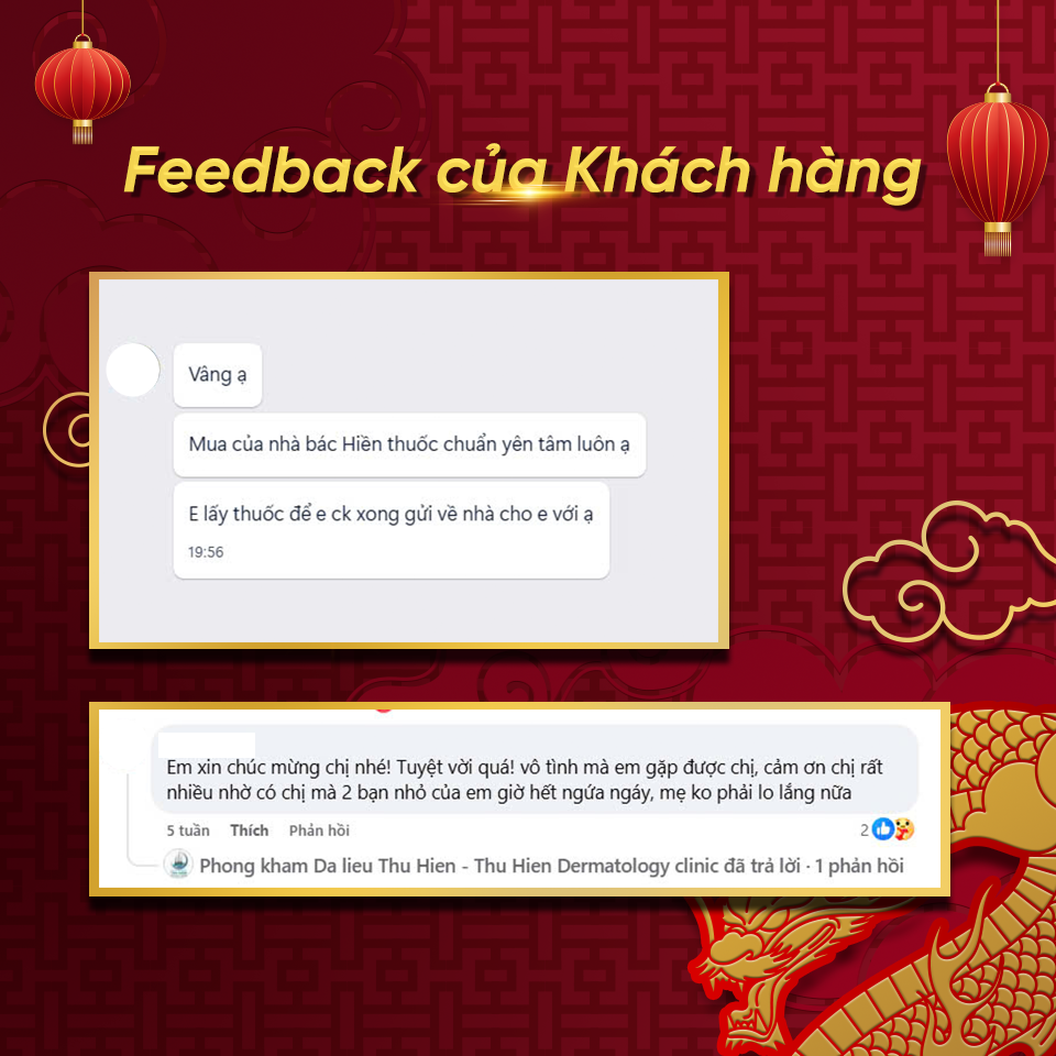Mình cảm thấy rất may mắn khi được gặp và điều trị bệnh tại Phòng khám Da liễu Thu Hiền. Chị Hiền không những là một bác sỹ giỏi mà còn rất nhiệt tình và tận tâm với người bệnh. Đây cũng là địa chỉ tin cậy cho những ai đang gặp vấn đề về da tìm đến. Chúc chị luôn mạnh khỏe để giúp đỡ được nhiều người bệnh. Em cảm ơn chị rất nhiều.