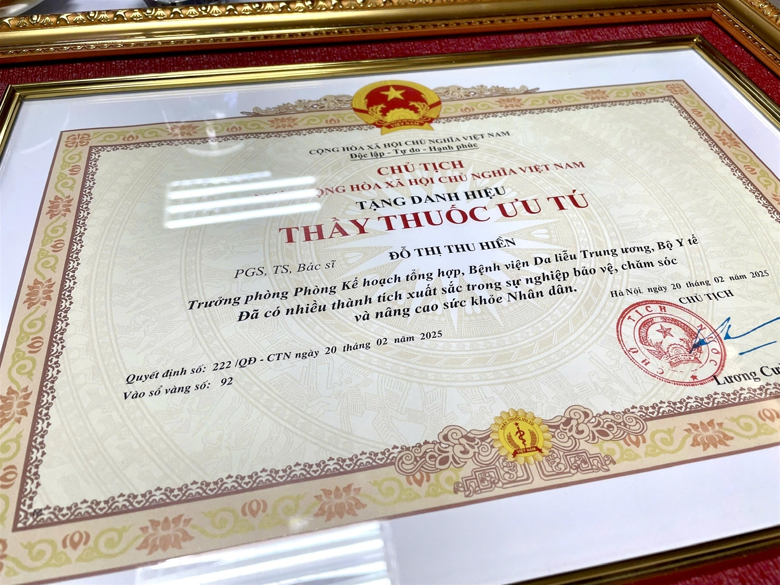 Danh hiệu "Thầy thuốc Ưu tú" không chỉ là niềm tự hào mà còn là minh chứng cho chuyên môn, y đức và tình yêu nghề của các bác sĩ, những người luôn tận tâm với từng bệnh nhân, đặt chất lượng và hiệu quả điều trị lên hàng đầu. Đây cũng là động lực để Phòng khám Da liễu Thu Hiền tiếp tục phát triển, mang lại dịch vụ y tế tốt nhất cho cộng đồng.