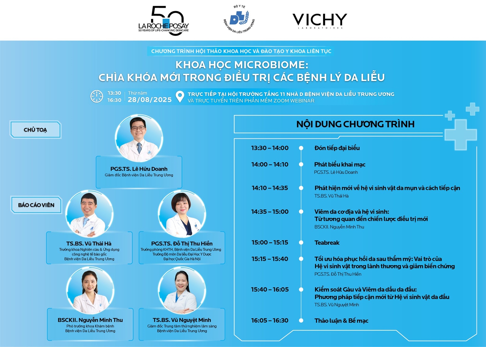 Ngày 28/08/2025, trong khuôn khổ Hội thảo khoa học “Khoa học Microbiome: Chìa khóa mới trong điều trị các bệnh lý da liễu”,