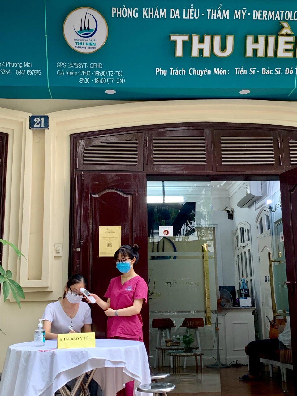 Để phục vụ nhu cầu khám chữa bệnh của nhân dân và góp phần giảm tải cho các bệnh viện lớn, Phòng khám Da liễu Thu Hiền vẫn duy trì hoạt động khám chữa bệnh bình thường, thực hiện nghiêm ngặt thông điệp 5K của Bộ y tế “ Khẩu trang – Khử khuẩn – Khoảng cách – Không tập trung – Khai báo y tế", nhằm giữ an toàn cho người bệnh và nhân viên y tế. Đây là nỗ lực nhỏ bé của Phòng khám cùng Việt Nam tiếp tục chống dịch COVID-19 trong trạng thái “bình thường mới” và trước diễn biến kéo dài của đại dịch COVID-1.
