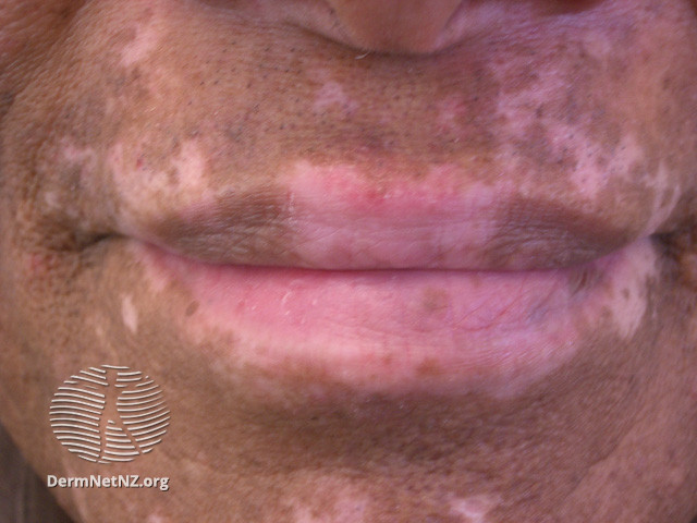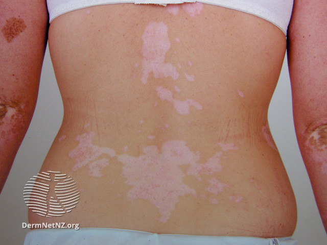 Vị trí tổn thương có thể gặp mọi vị trí cơ thể, tuy nhiên người ta thấy tổn thương thường xuất hiện ở mu bàn tay, cổ tay, cẳng tay, mặt, cổ, bộ phận sinh dục và vùng xung quanh bộ phận sinh dục. Có đến 80% trường hợp các vết mất sắc tố khu trú ở vùng hở (các chi, mặt và cổ). Các tổn thương sắp xếp thường có tính chất đối xứng. Tuy nhiên, cũng có nhiều trường hợp chỉ có một bên của cơ thể. Tóc hay lông trên vùng tổn thương có nhiều trường hợp cũng mất sắc tố. Lòng bàn tay, bàn chân và niêm mạc thường không xuất hiện tổn thương.