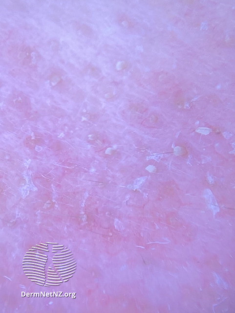 - Khi trưởng thành D.folliculorum có chiều dài 0,3-0,4 mm, D.brevis 0,15-0,2mm, có bốn cặp chân ngắn gần khu vực đầu và cổ. Chỉ có ba cặp chân ngắn gần khu vực đầu khi còn là ấu trùng hoặc nhộng.