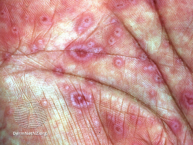 - Vị trí khu trú đặc biệt: lòng bàn tay, lòng bàn chân nhưng có thể ở vị trí khác: niêm mạc miệng, sinh dục.