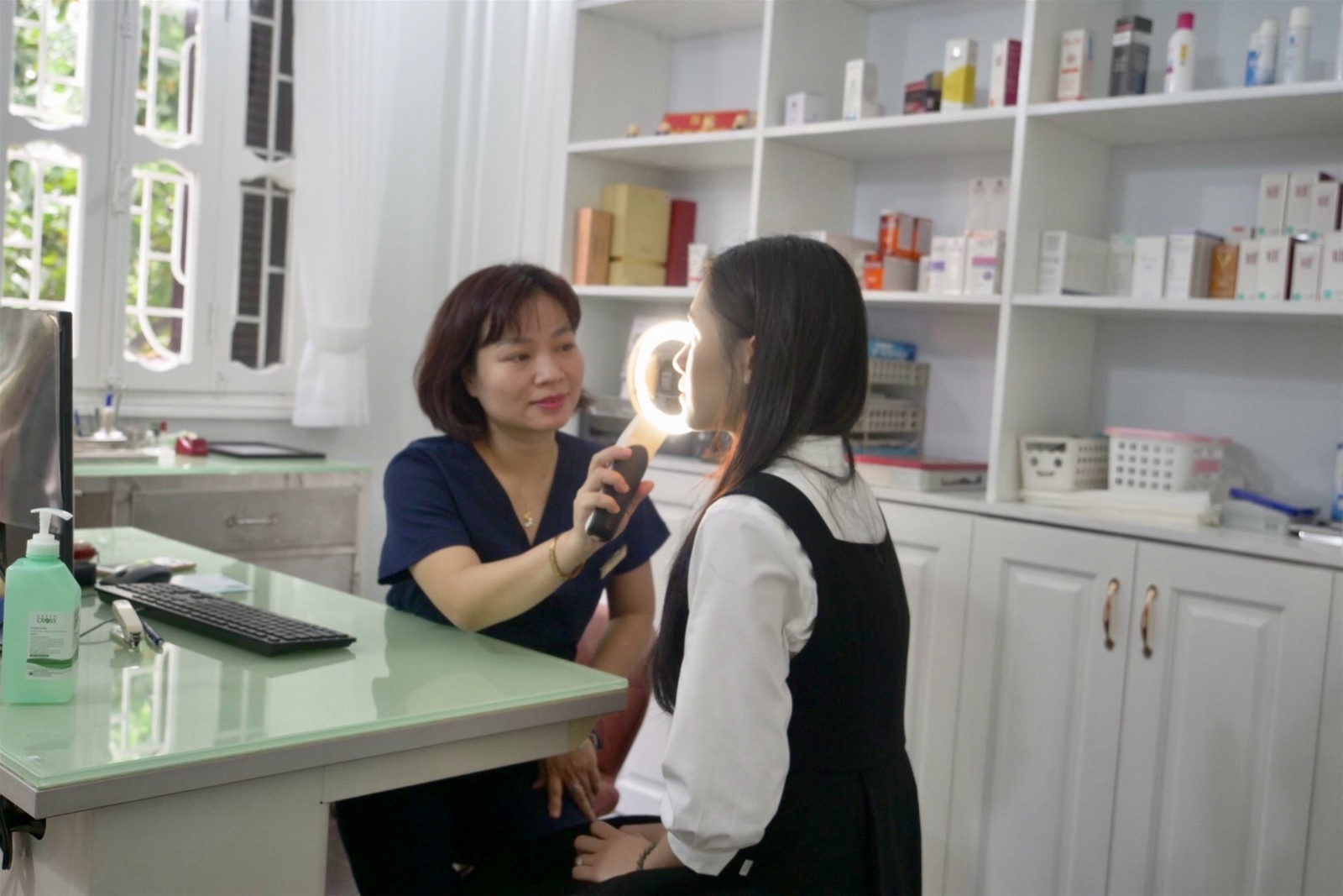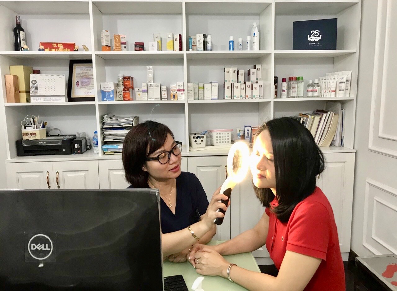 Đến với Phòng khám Da liễu Thu Hiền, khách hàng có nhu cầu thẩm mỹ làm đẹp sẽ được soi và phân tích tình trạng da, tóc, móng bằng máy soi da của Đức và được tư vấn về cách chăm sóc da cũng như các sản phẩm chăm sóc da, tóc phù hợp.