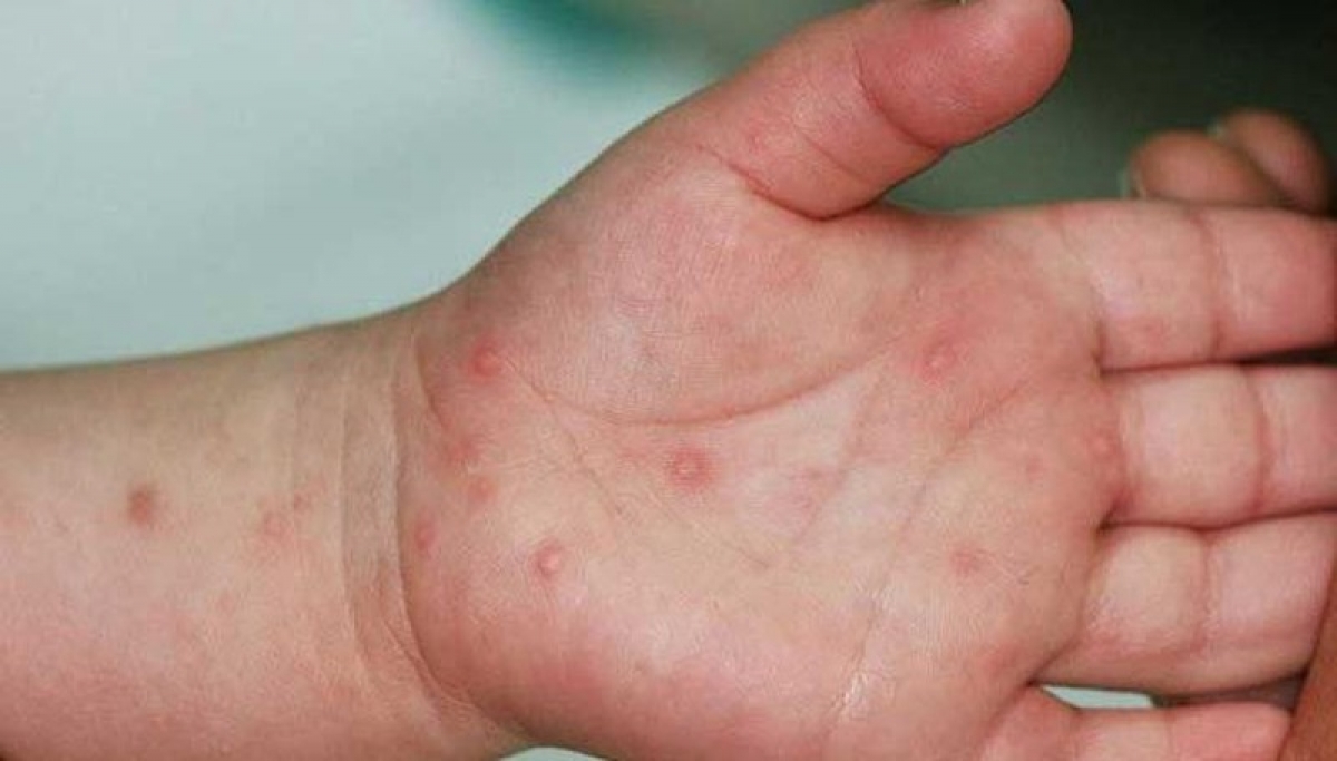 - Phát ban dạng phỏng nước: Ở lòng bàn tay, lòng bàn chân, gối, mông; tồn tại trong thời gian ngắn (dưới 7 ngày) sau đó để lại vết thâm.