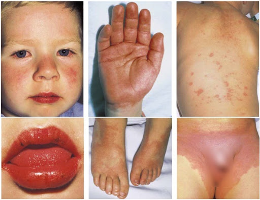 - Biểu hiện bệnh : sốt, viêm kết mạc mắt, thay đổi niêm mạc miệng, phù đầu chi và bệnh lý hạch lympho ở cổ.