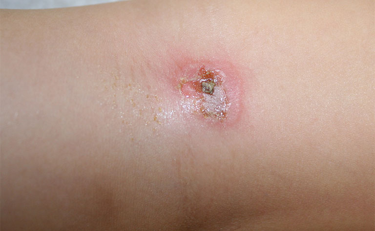 - Gãi nhiều trên da xuất hiện vết xước và mụn mủ do bội nhiễm.
