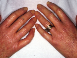 Xơ cứng da, dày da là triệu chứng rất thường gặp và đặc trưng cho bệnh xơ cứng bì hệ thống, gặp ở 98% bệnh nhân xơ cứng bì. Tổn thương da thường tiến triển qua 2 giai đoạn: