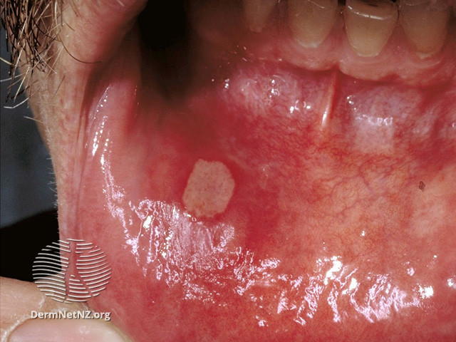- Thương tổn cơ bản là các vết loét nông riêng biệt, giới hạn rõ, đáy màu trắng hoặc vàng, bờ đỏ, kích thước từ 1 vài mm tới vài cm. Vết loét thường có cảm giác rát, đau. Vị trí ở vòm miệng, nền miệng, lưỡi, lợi, má.