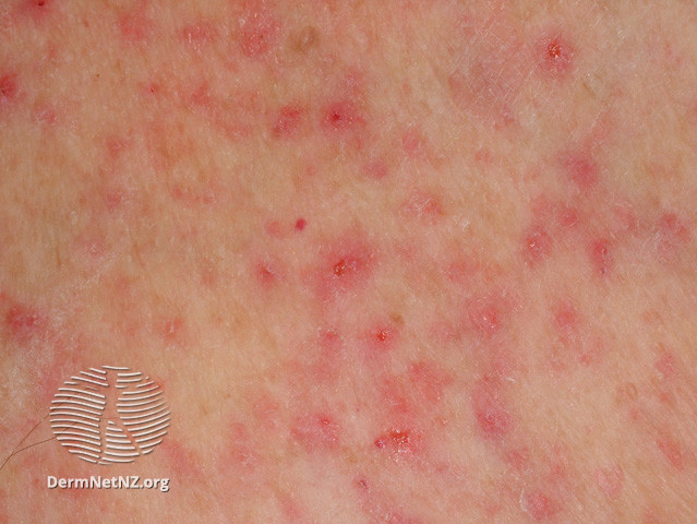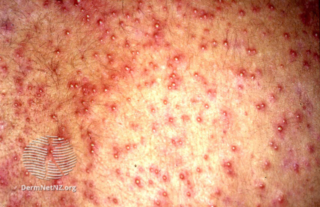 - Thương tổn là các sẩn màu đỏ hồng, trên có mụn nước nhỏ, đôi khi có mụn mủ trắng xen lẫn.