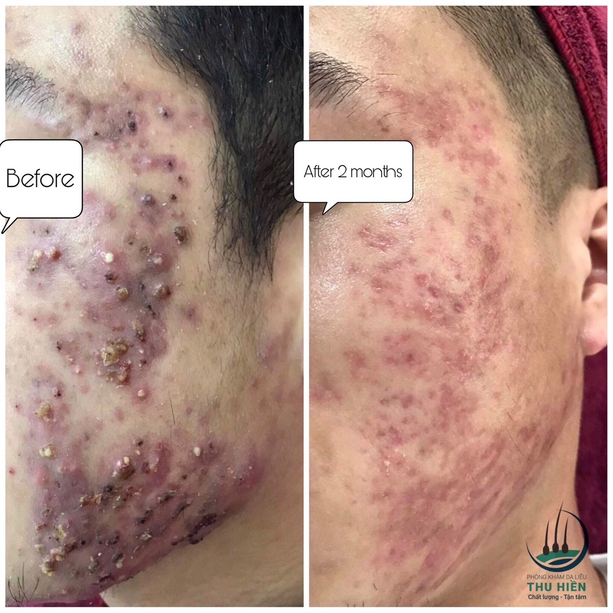 Phòng khám Da liễu Thu Hiền xin gửi tới các bạn hình ảnh của một bệnh nhân bị trứng cá bùng phát sau điều trị isotretinoin và kết quả điều trị sau 2 tháng.
