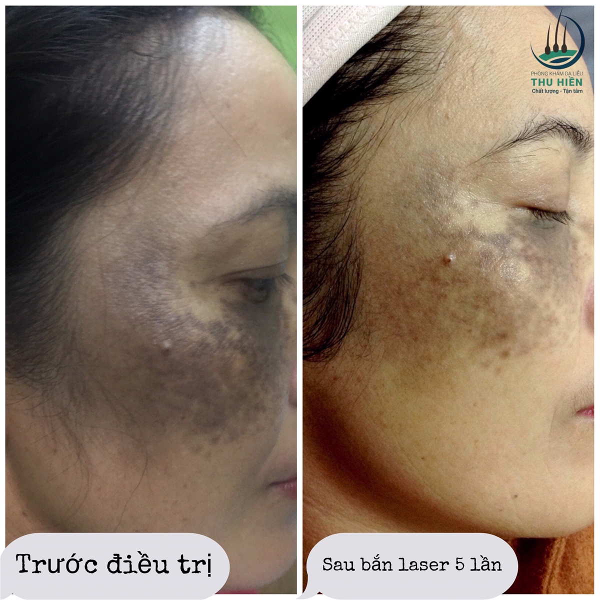 Bệnh nhân NBN, nữ 45 tuổi, sau 5 lần điều trị bớt sắc tố bằng laser Nd YAG